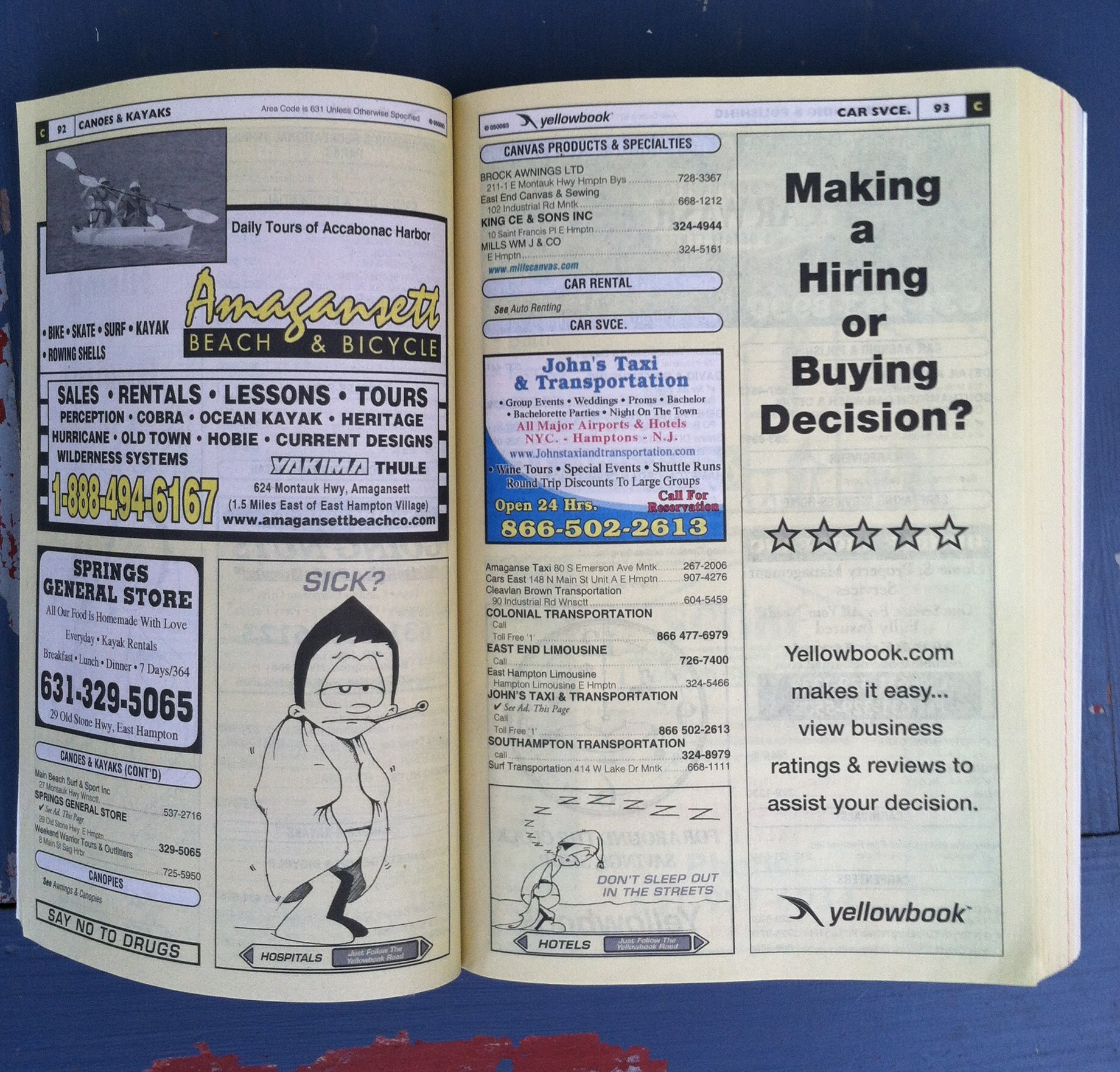 As a little girl I played with phone books. I used the small ones, the ones that feel like a novel and fit in a purse and are populated with rectangular ads of varied dimensions. I turned the feathery pages one by one to look up a piece of crucial information and chunked through stacks of pages to find an appropriate rectangle for my next purpose. The ads became calculators, password protected portals into worlds of hidden information, and analytic tools.