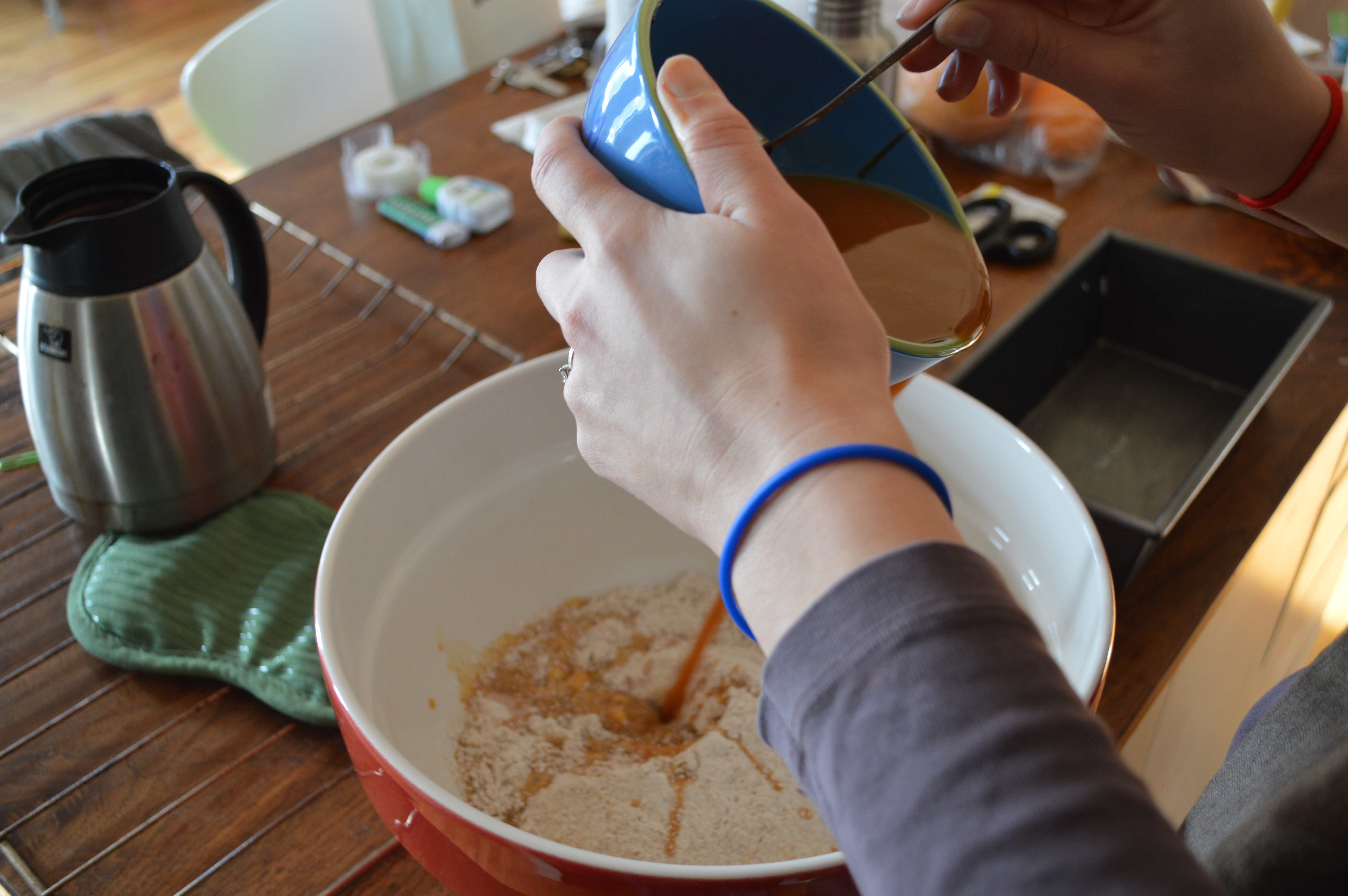 Dissolve the yeast in half a cup of the warm water, and blend in the molasses. Let the yeast proof: this means giving it a few minutes to prove itself alive and well by starting to get bubbly in its water and molasses.