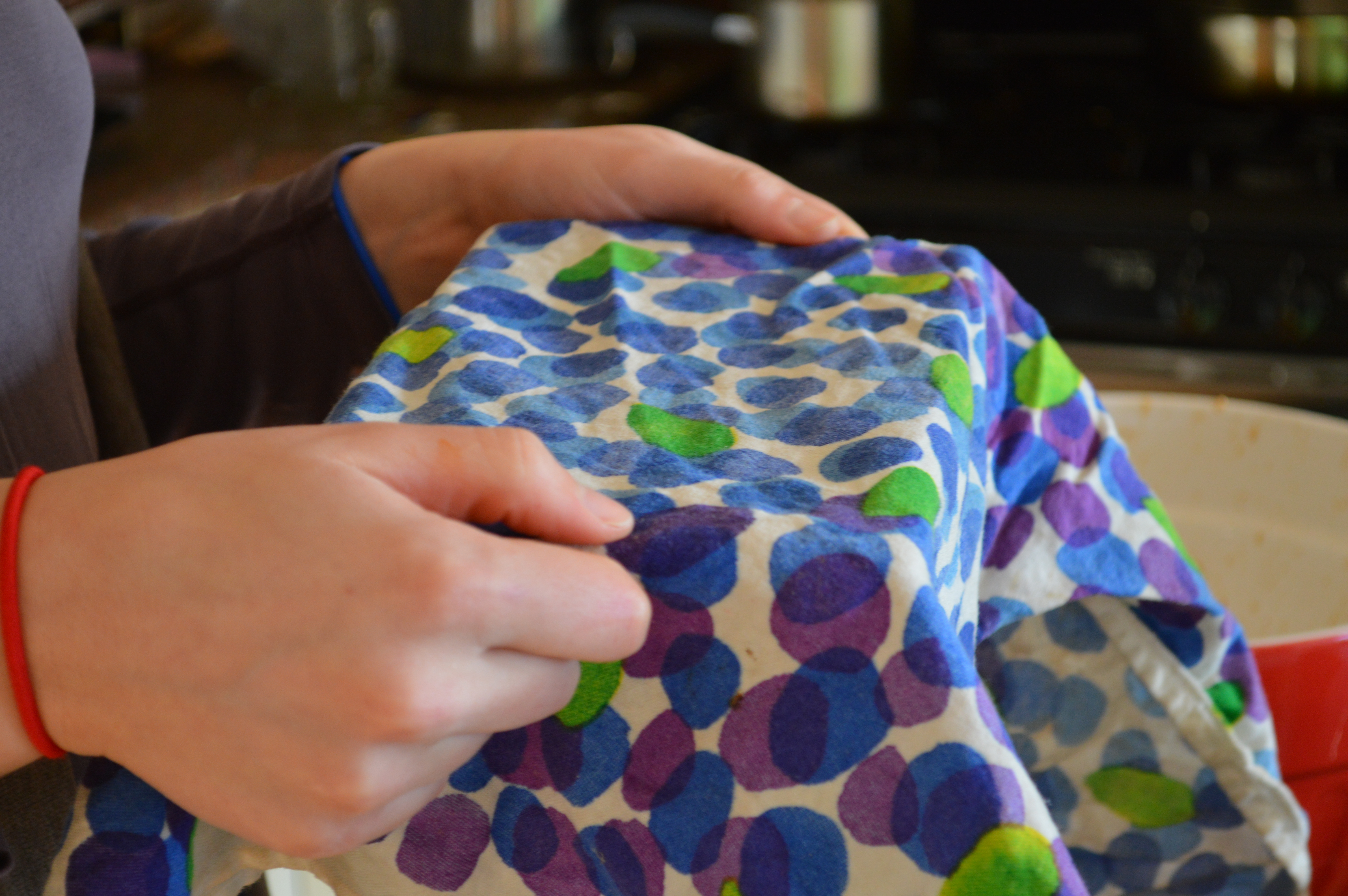Put the flour in a large bowl and place it in a warm oven. (The book said a gas oven with the pilot light on would be warm enough, but mine didn’t feel warm at all, so I turned it on to 200 with my ceramic bowl inside.) Both the flour and the bowl should be warm when you make the bread.